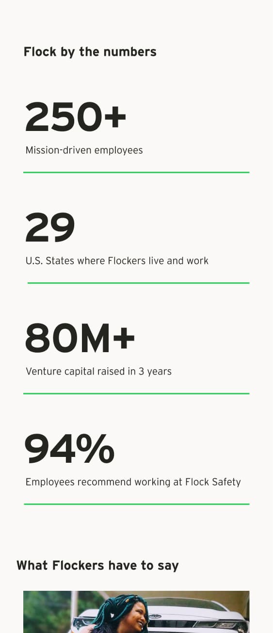 By testing multiple versions of our homepage design and other sections of the Flock Safety website, we were able to maximize the site’s engagement and double the conversions within five months of the site launch.