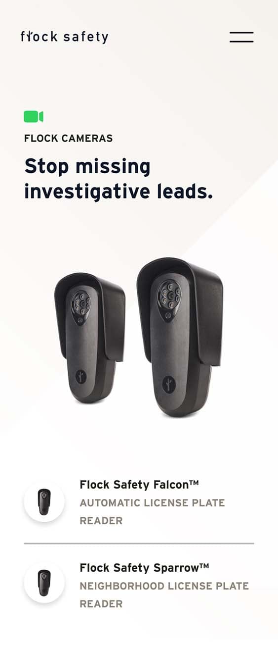 By working with the whole community - neighborhoods, businesses, law enforcement, and elected officials - their services help solve upwards of five percent of all reported crimes in America. Flock’s union of hardware and software helps communities stop crime, protect privacy, and mitigate bias.